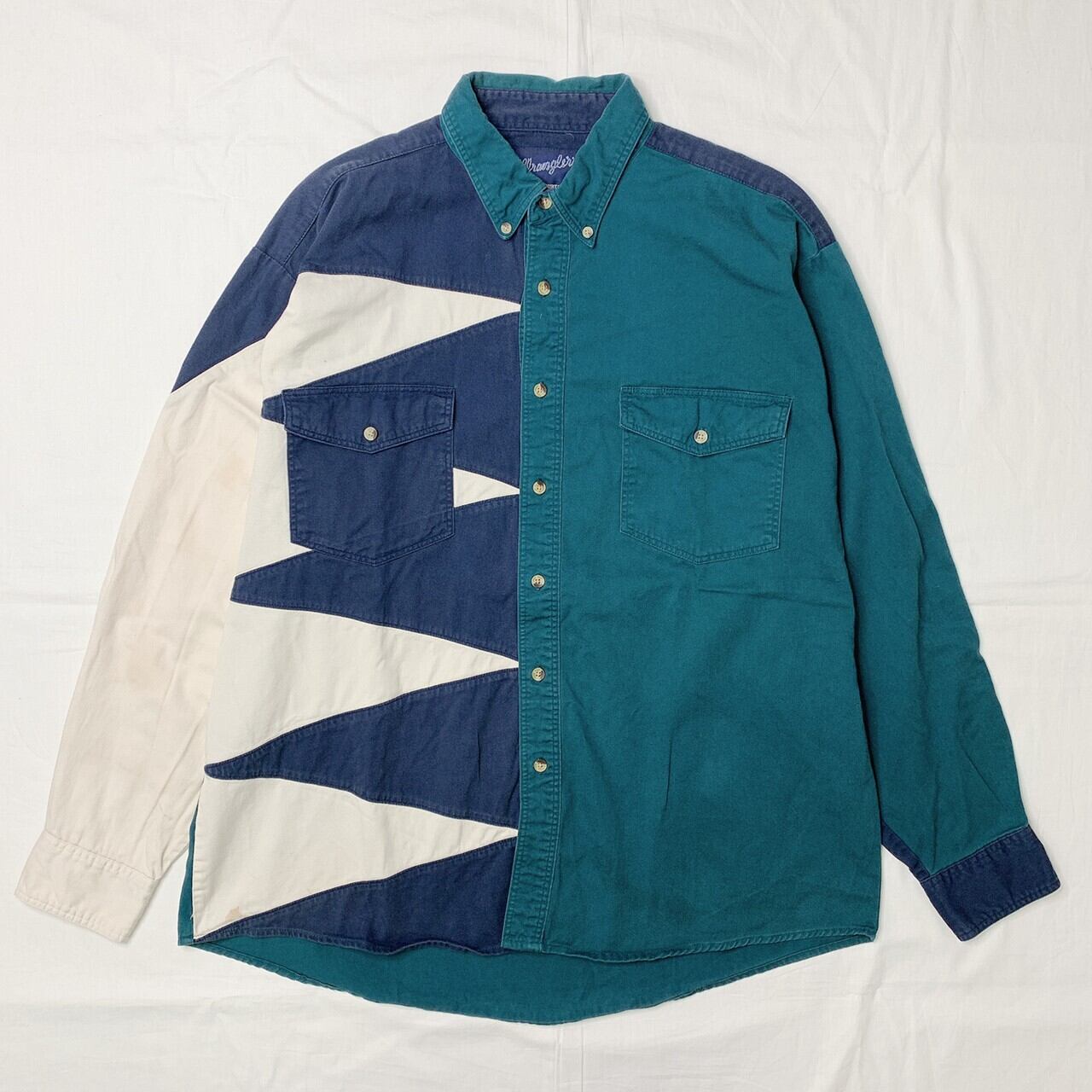 old western shirts green x navy big size XL