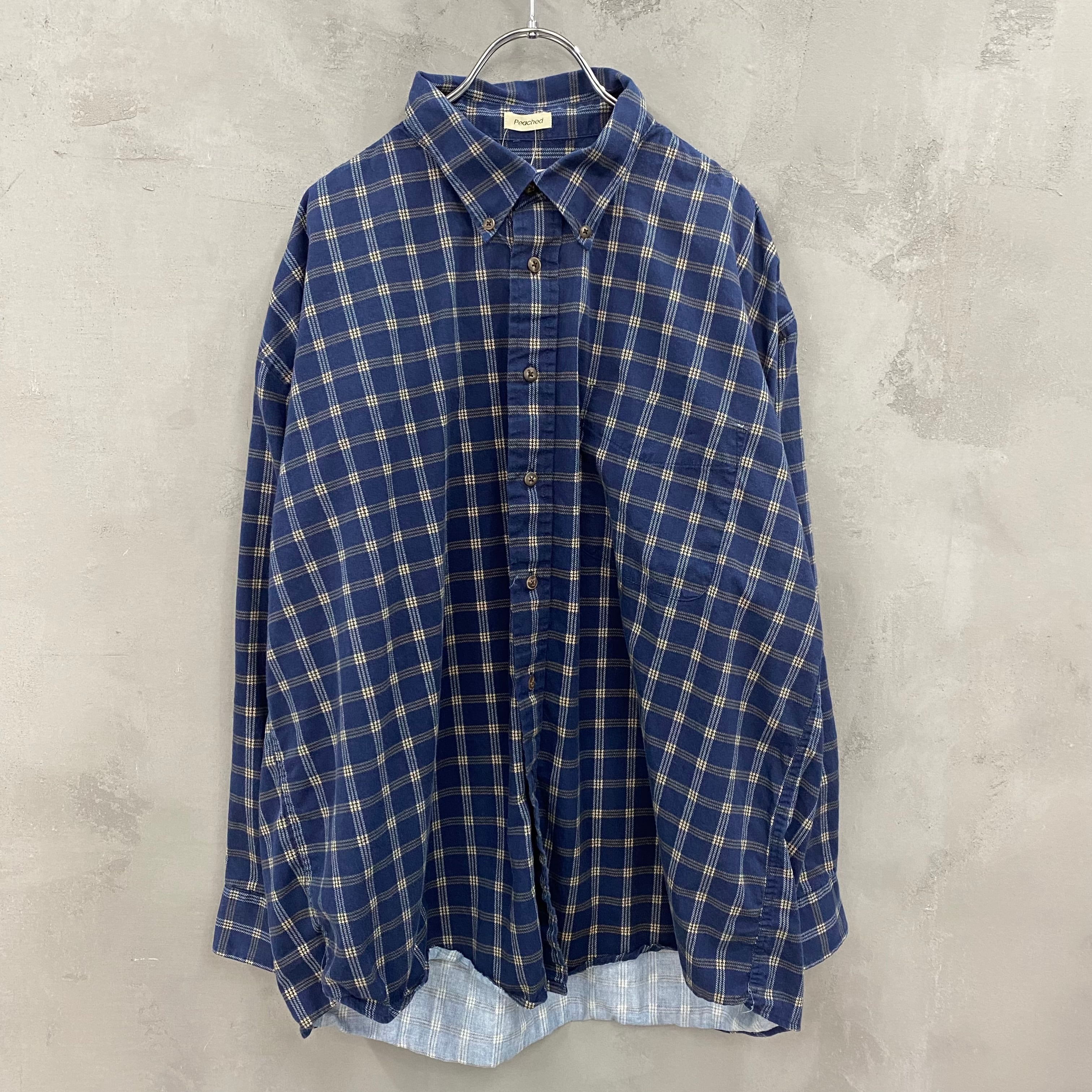 NATURAL ISSUE Peached bigsize チェック シャツ 長袖 XL ネイビー