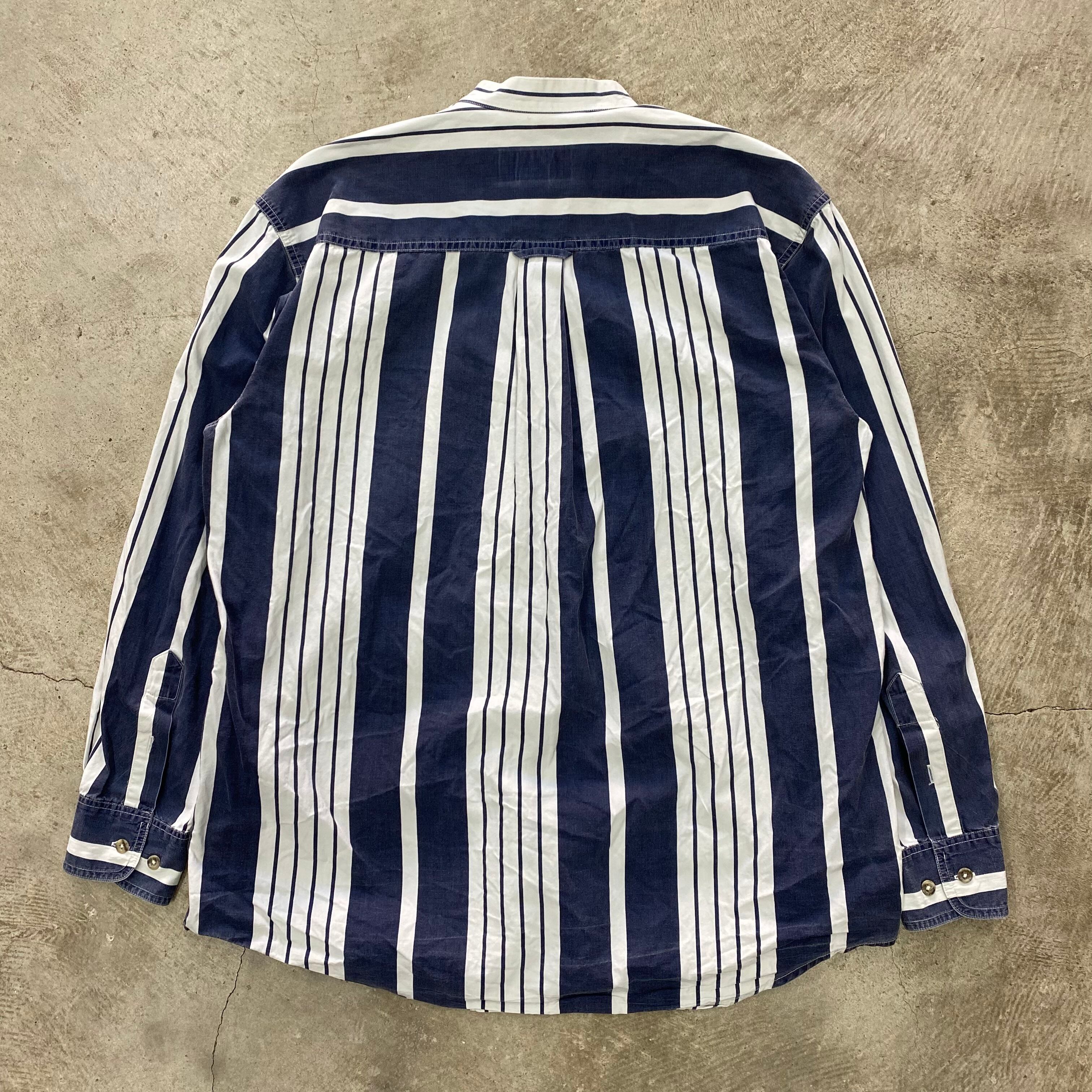 old ストライプ シャツ 白 ネイビー 90s