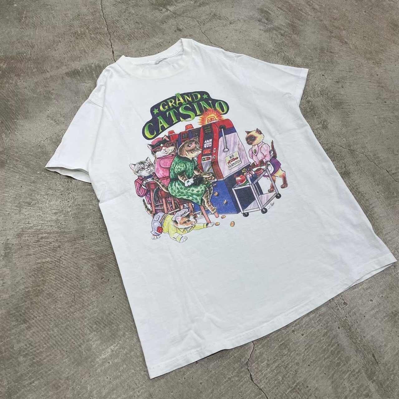 OLD REAL PRINT ART "CATSINO" WHITE TSHIRT